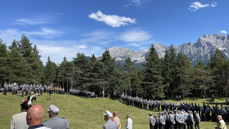 Der Präsident des Kameradenkreises der Gebirgstruppe, Oberst a.D. Hans Sahm, begrüßte die Teilnehmer, unter ihnen auch Abordnungen der Internationalen Föderation der Gebirgssoldaten (I.F.M.S.).