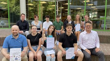 Darüber hinaus hat die Klasse einen Instagram-Account zu ihrem Projekt erstellt, der mittlerweile mehr als 70 Follower hat. Die Schülerinnen und Schüler durften sich durch die Überreichung der Auszeichnung durch den Bezirksgeschäftsführer für Oberbayern, Benedikt Klima, freuen. Beide Schulen durften sich über je 600 € Preisgeld freuen.