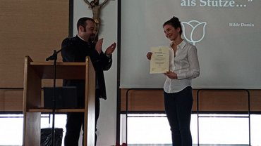 Nicht minder engagiert und professionell umgesetzt war der Beitrag des Katharinen Gymnasiums Ingolstadt. Hier hatten sich 24 Schülerinnen und Schüler der 10. Jahrgangsstufe mit ihrem Lehrer, Sebastian Adam, dem Thema „Kriegsgräberstätten als Lernorte der Geschichte in Ingolstadt“ angenommen.